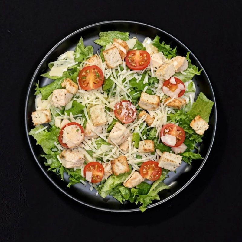 - Сочное куриное филе, хрустящий листовой салат и спелые помидоры черри, пикантно-ореховый пармезан, сливочный соус Кентукки и сухари — свежий и вдохновляющий баланс вкуса