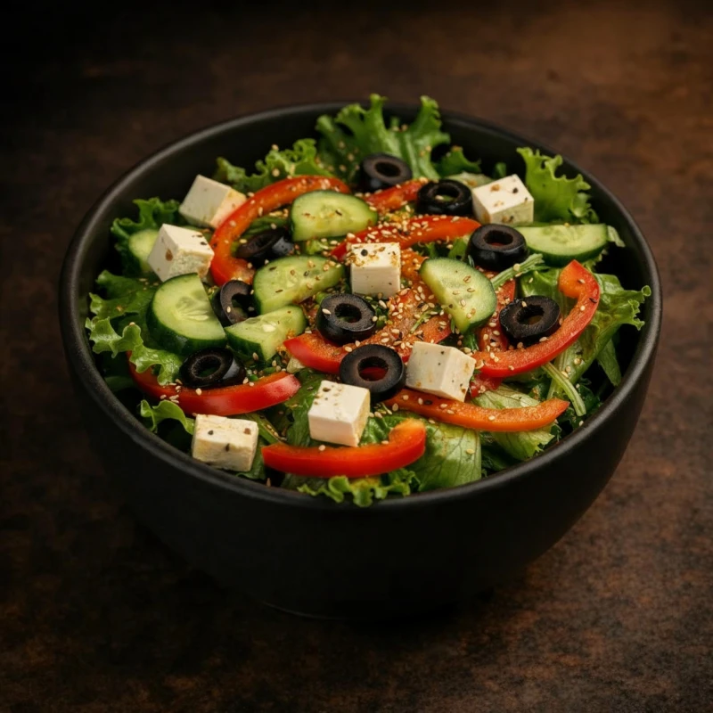 Хрустящий листовой салат, сладкий болгарский перец, сочные томаты, огурцы и маслины под нежным сыром фета — лёгкость и яркость овощного букета. 250г