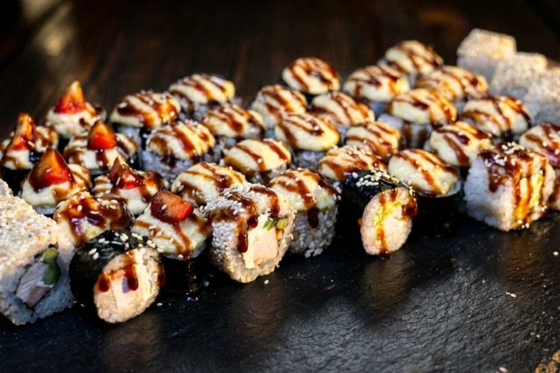 Сочная курица, свежие овощи, тёплые сырные соусы и столько белка, что наедаются все за столом (40 шт)