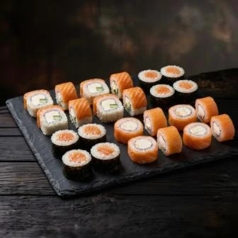 Филадельфия классика, Филадельфия лайт и Сяке маки — ассорти роллов с нежным лососем и творожным сыром. (24шт)